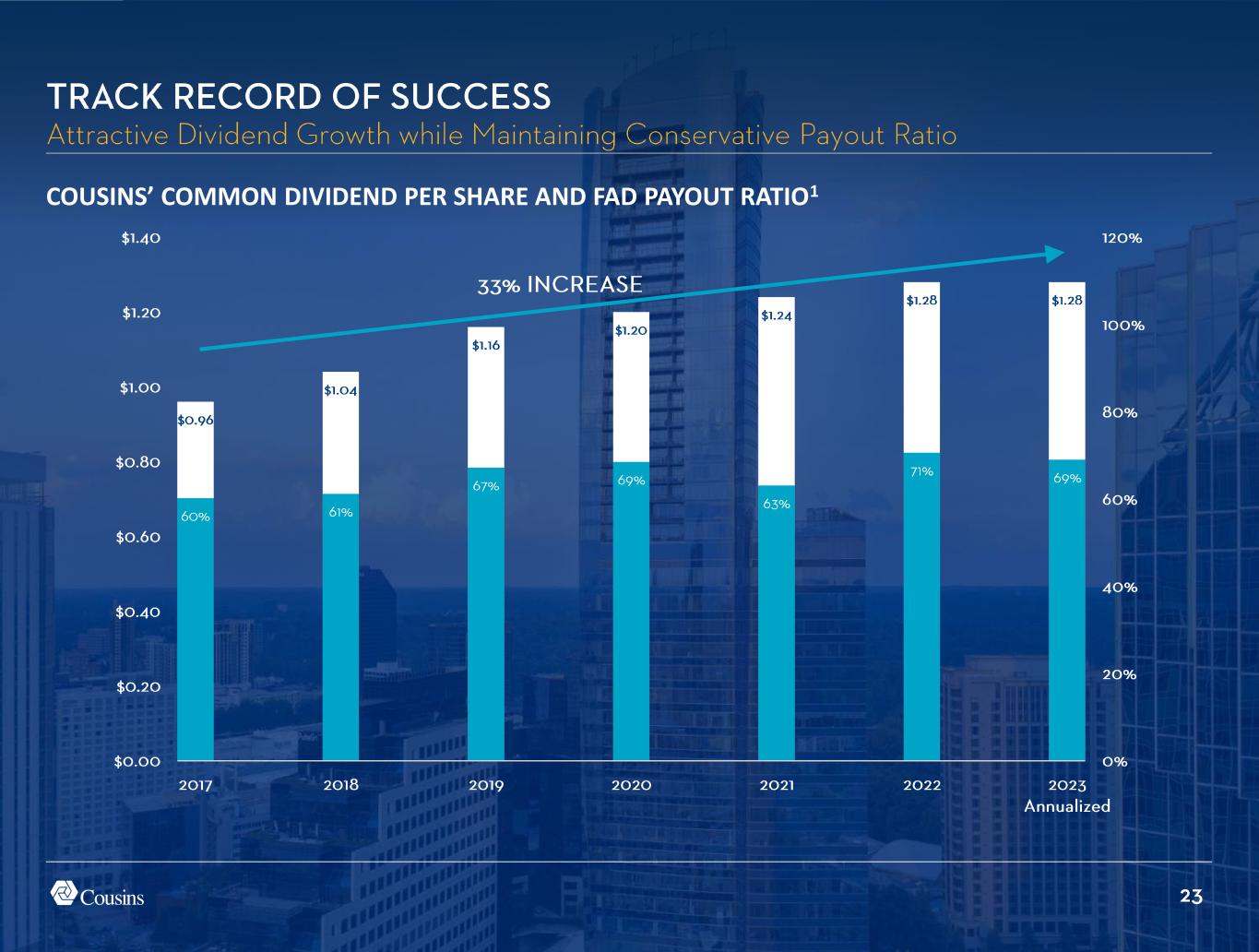 COUSINS’ COMMON DIVIDEND PER SHARE AND FAD PAYOUT RATIO1