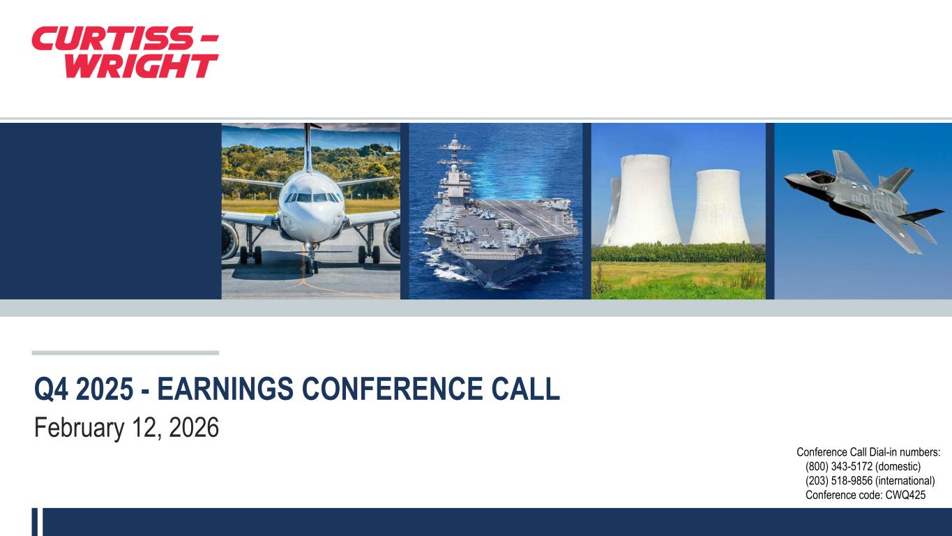 1 | January 8, 2026 | Proprietary | © 2025 Curtiss-Wright Q4 2025 - EARNINGS CONFERENCE CALL February 12, 2026 Conference Call Dial-in numbers: (800) 343-5172 (domestic) (203) 518-9856 (international) Conference code: CWQ425