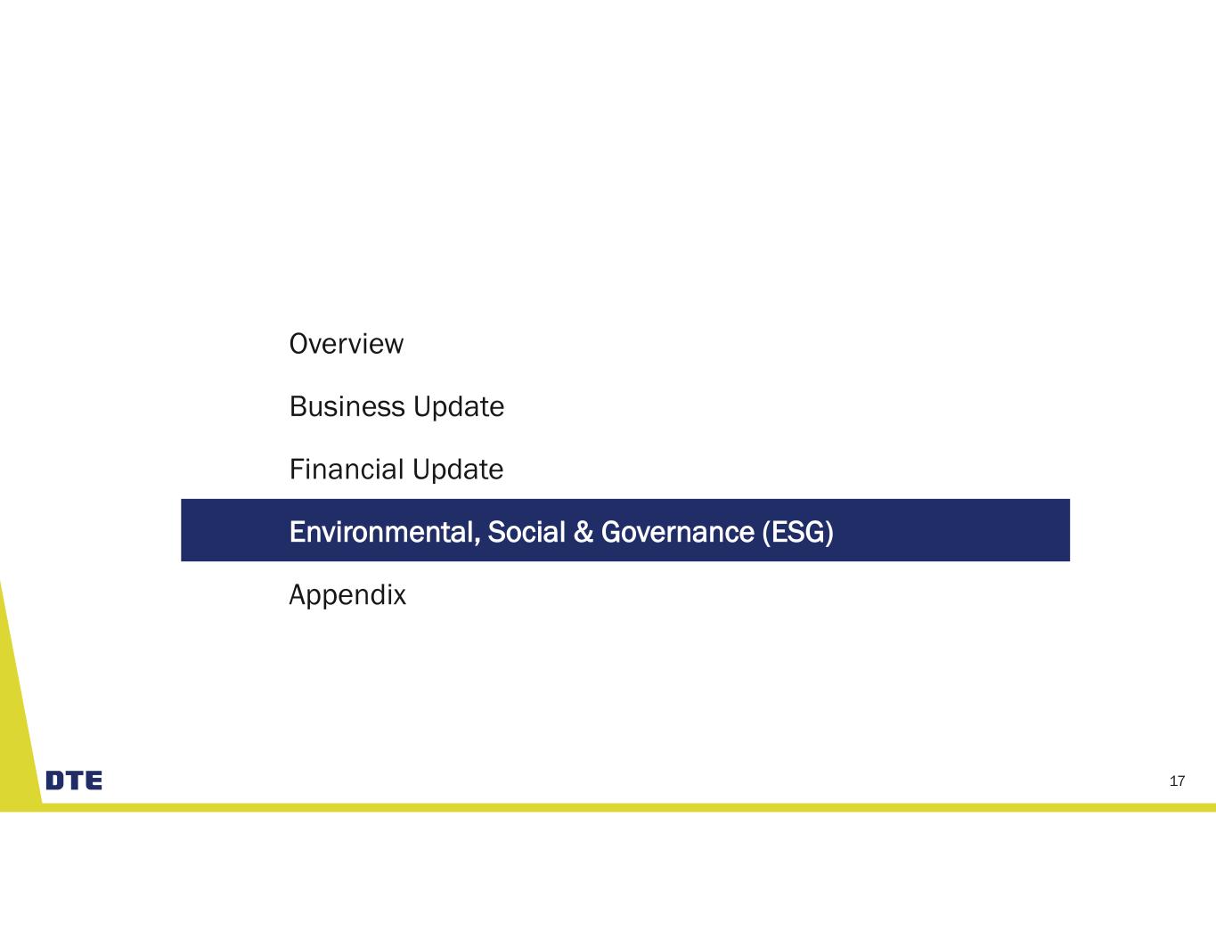 17 Overview Business Update Financial Update Environmental, Social & Governance (ESG) Appendix