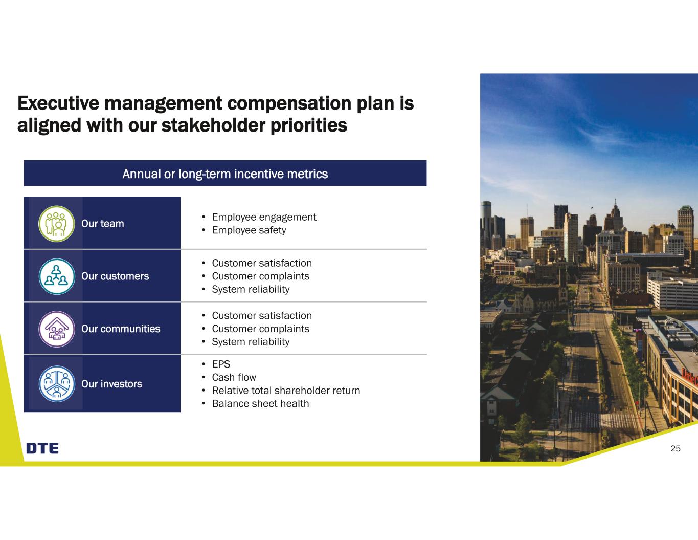 Annual or long-term incentive metrics Our team • Employee engagement • Employee safety Our customers • Customer satisfaction • Customer complaints • System reliability Our communities • Customer satisfaction • Customer complaints • System reliability Our investors • EPS • Cash flow • Relative total shareholder return • Balance sheet health Executive management compensation plan is aligned with our stakeholder priorities 25