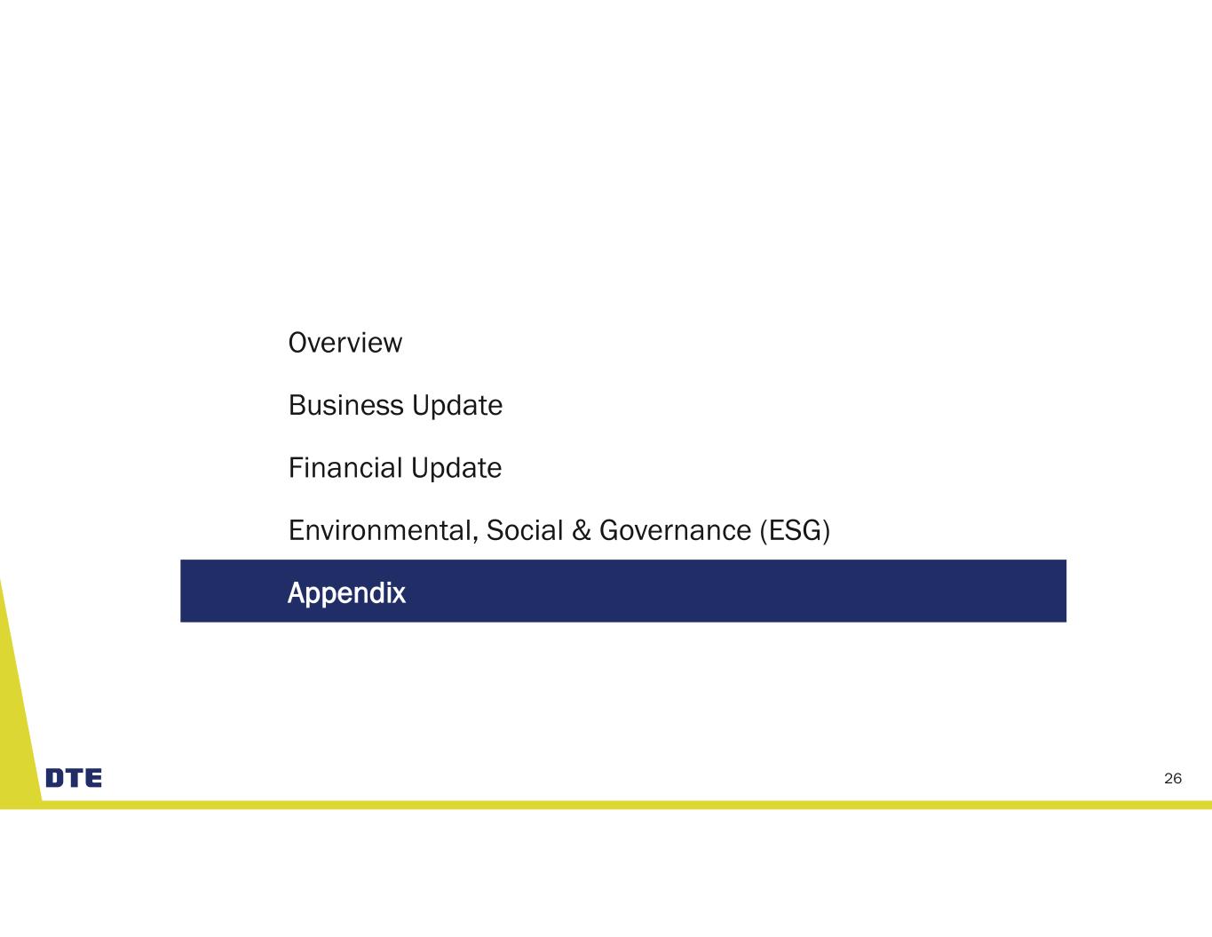 26 Overview Business Update Financial Update Environmental, Social & Governance (ESG) Appendix