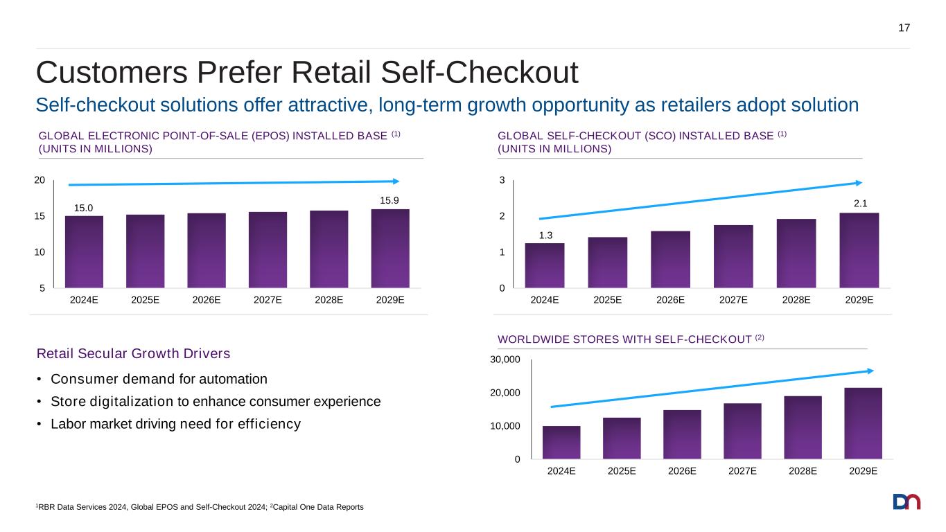 ~200 ~800 ~600 Installed base Upgraded to date with DN Series Portfolio Yet to be upgraded DN’s Reality: Large ATM Refresh Opportunity 16 DN ATM INSTALLED UNITS (000)(1) Higher Penetration of Recycling Technology Service & Software Attach Rate Installed ATM & Recurring Service 1RBR Data Services 2024, Global ATM Intelligence Service 2024 – Excludes China, Japan, South Korea and Russia We are in the early stages of a refresh cycle providing clear visibility to Banking growth ~75% global installed base refresh opportunity ATM refresh cycle creates visibility and a recurring catalyst for service and software growth