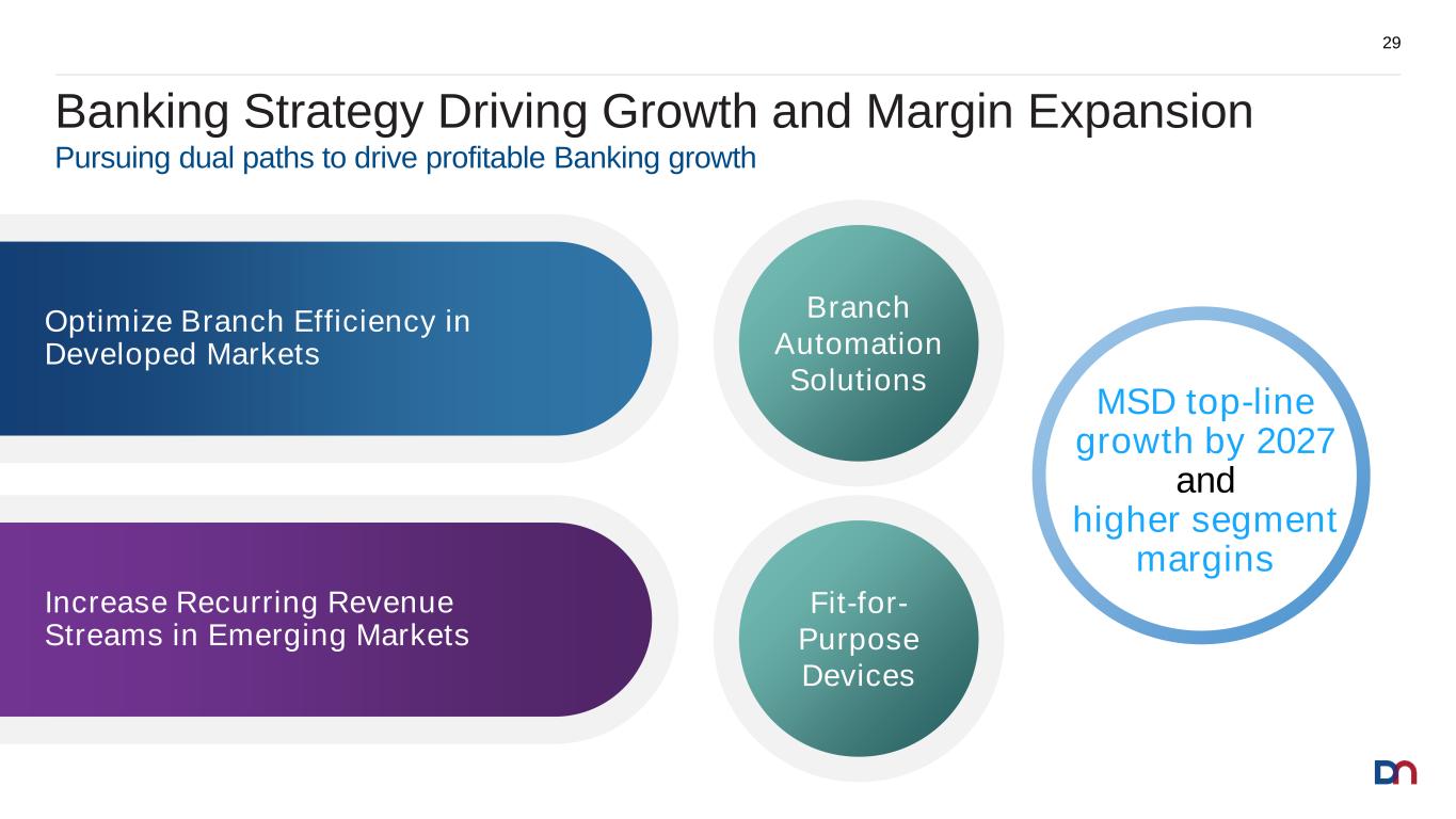 Global Leadership is a Core Competitive Advantage 28 #2 L. AMERICA w/o Brazil #1 59% share EUROPE w/o Russia #1 47% share N. AMERICA #3 21% share BRAZIL #1 60% share WORLD w/o Ch/J/SK #1 37% share APMEA w/o Ch/J/SK #2 35% share #1 in ATMs Installed Globally1 #1 in Total ATM Application and Monitoring Software2 ~800k ATM Units Installed Base1 BANKING 1RBR Data Services 2024, Global ATM Intelligence Service 2024 – Excludes China, Japan, South Korea and Russia, regions sorted by DN’s business; 2RBR Data Services 2023, ATM Software Our leadership gives us the right to win as we drive additional efficiencies across the Banking ecosystem