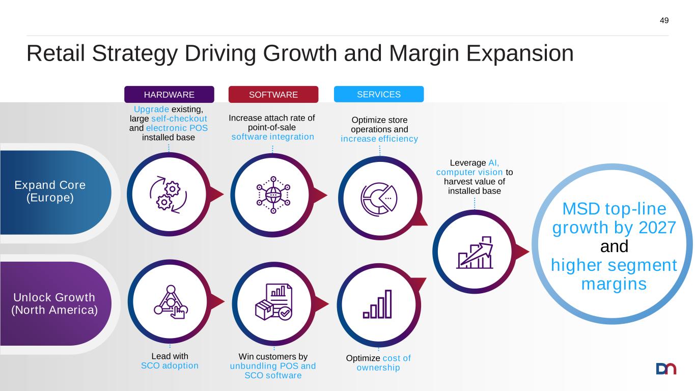 Lead with SCO adoption MSD top-line growth by 2027 and higher segment margins Unlock Growth (North America) Expand Core (Europe) Retail Strategy Driving Growth and Margin Expansion 49 Leverage AI, computer vision to harvest value of installed base Upgrade existing, large self-checkout and electronic POS installed base Increase attach rate of point-of-sale software integration Optimize store operations and increase efficiency Win customers by unbundling POS and SCO software Optimize cost of ownership HARDWARE SOFTWARE SERVICES