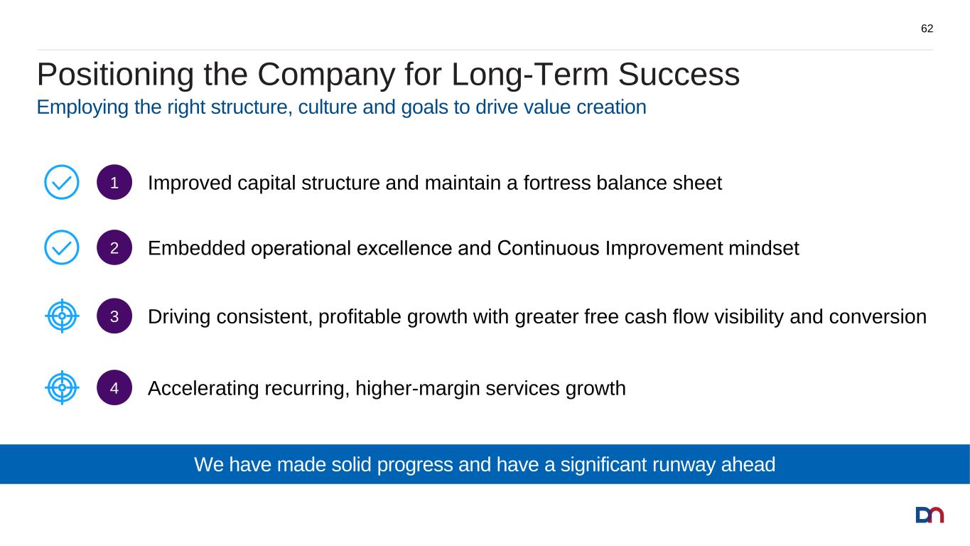 Positioning the Company for Long-Term Success 62 Employing the right structure, culture and goals to drive value creation Driving consistent, profitable growth with greater free cash flow visibility and conversion3 Embedded ​operational ​excellence and Continuous Improvement ​mindset2 Accelerating recurring, higher-margin services growth4 Improved capital structure and maintain a fortress balance sheet1 We have made solid progress and have a significant runway ahead