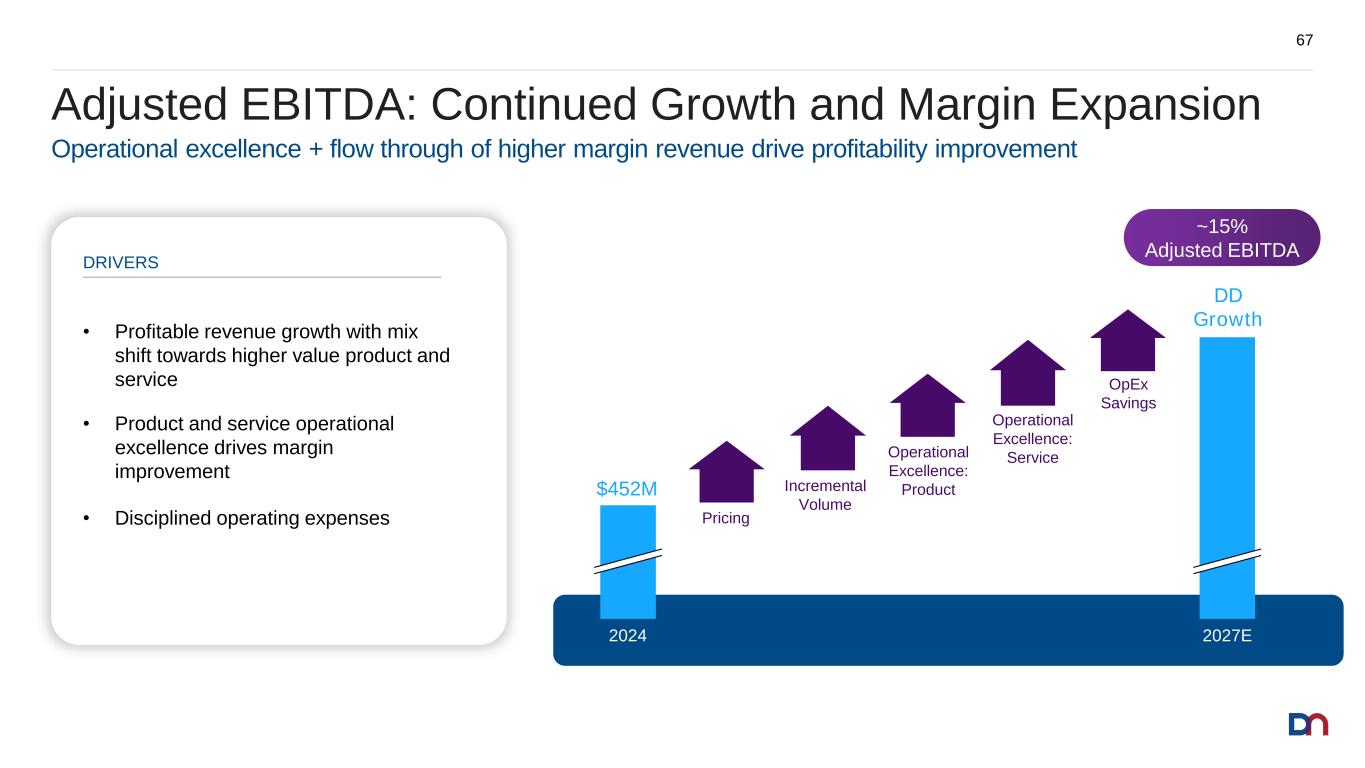 Adjusted EBITDA: Continued Growth and Margin Expansion 67 2024 2027E • Profitable revenue growth with mix shift towards higher value product and service • Product and service operational excellence drives margin improvement • Disciplined operating expenses DRIVERS Operational excellence + flow through of higher margin revenue drive profitability improvement OpEx Savings Operational Excellence: ServiceOperational Excellence: ProductIncremental Volume Pricing $XXX $XXX ~15% Adjusted EBITDA DD Growth $452M