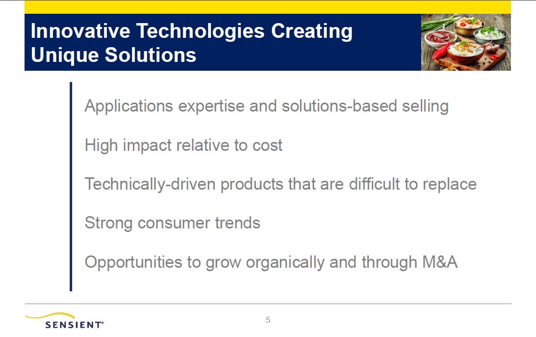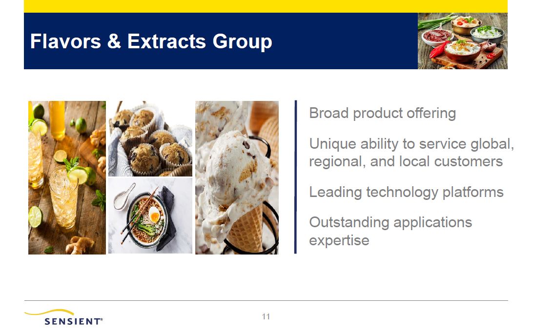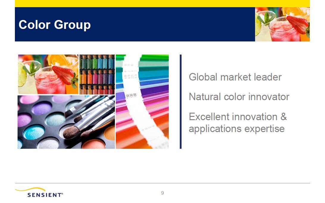 Sensient Overview  2  Provider of customized solutions for food and beverage, pharmaceutical, and personal care customers  Global market leader offering an extensive portfolio of natural flavor and color technology platforms and solutions  Exceptional innovation & applications expertise with unique  ability to service global, regional, and local customers