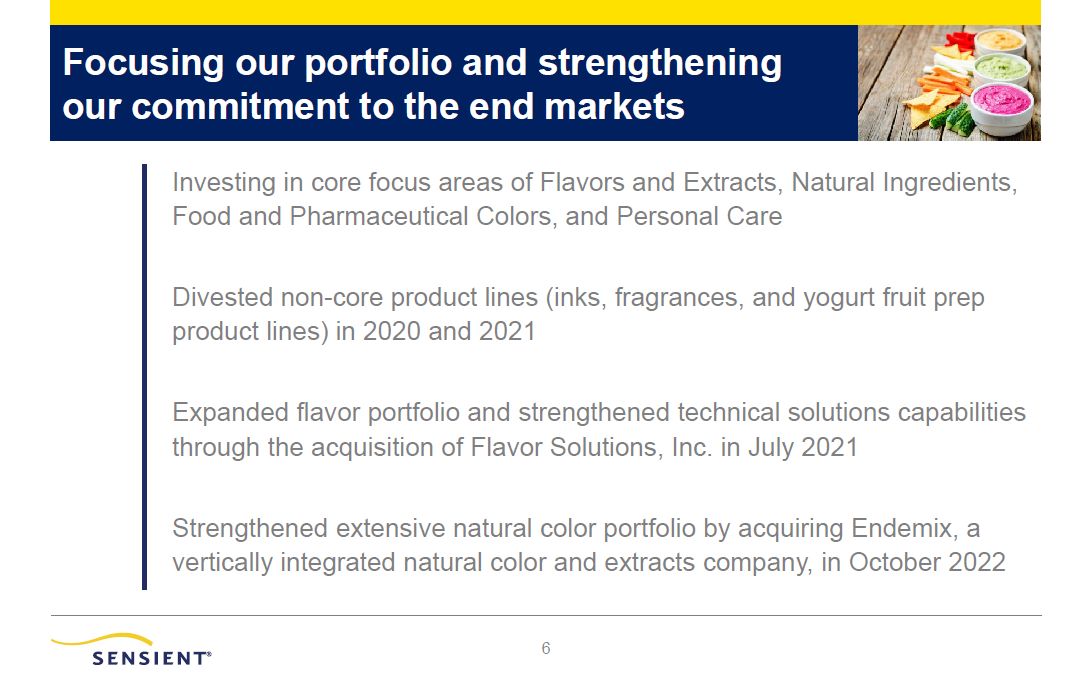 Focusing our portfolio and strengthening our commitment to the end markets  2  Investing in core focus areas of Flavors and Extracts, Natural Ingredients,  Food and Pharmaceutical Colors, and Personal Care  Divested non-core product lines (inks, fragrances, and yogurt fruit prep  product lines) in 2020 and 2021  Expanded flavor portfolio and strengthened technical solutions capabilities through the acquisition of Flavor Solutions, Inc. in July 2021  Strengthened extensive natural color portfolio by acquiring Endemix, a vertically integrated natural color and extracts company, in October 2022