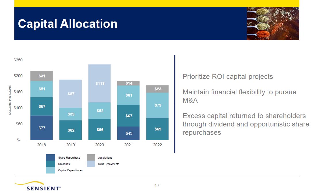 Capital Allocation  rs  re  DOLLARS IN MILLIONS  $250  $200 $31  $150 $51  $87  $100 $57  $39  $50  $77 $62  $-  2018 2019  Share Repurchase  Prioritize ROI capital projects  $118 $14  $23 Maintain financial flexibility to pursue  $61  M&A  $79  $52  $67 Excess capital returned to shareholde  through dividend and opportunistic sha  $66 $69  $43 repurchases  2020 2021 2022  Acquisitions  Dividends  Debt Repayments  Capital Expenditure  s  17