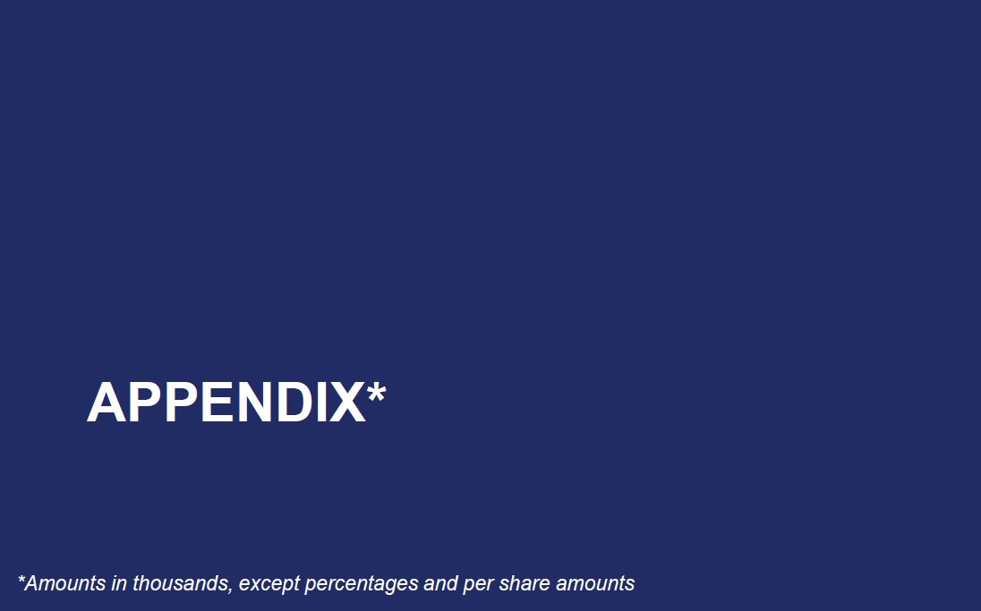 APPENDIX*  *Amounts in thousands, except percentages and per share amounts