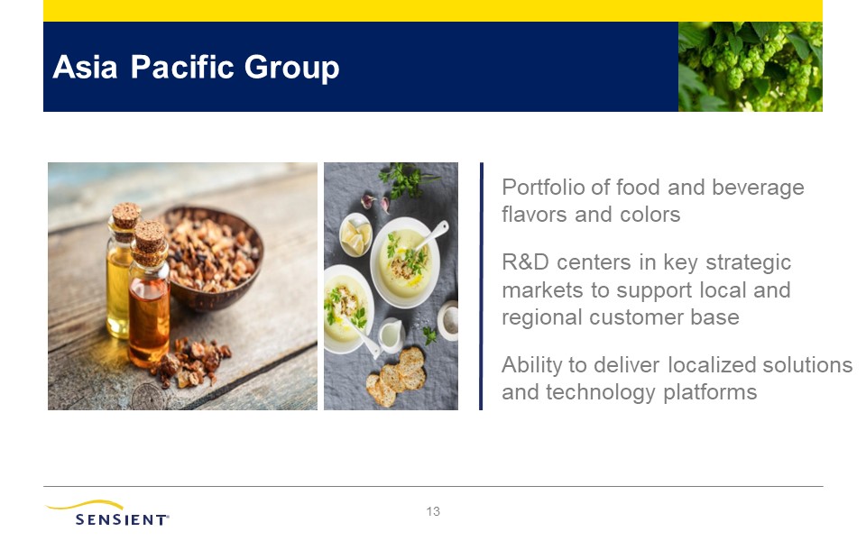 11  Flavors & Extracts Group  Broad product offering  Unique ability to service global, regional, and local customers  Leading technology platforms Outstanding applications  expertise