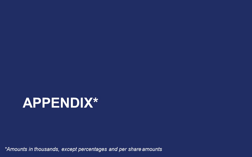 APPENDIX*  *Amounts in thousands, except percentages and per share amounts