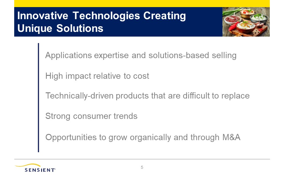 Sensient Overview  2  Provider of customized solutions for food and beverage, pharmaceutical, and personal care customers  Global market leader offering an extensive portfolio of natural flavor and color technology platforms and solutions  Exceptional innovation & applications expertise with unique  ability to service global, regional, and local customers