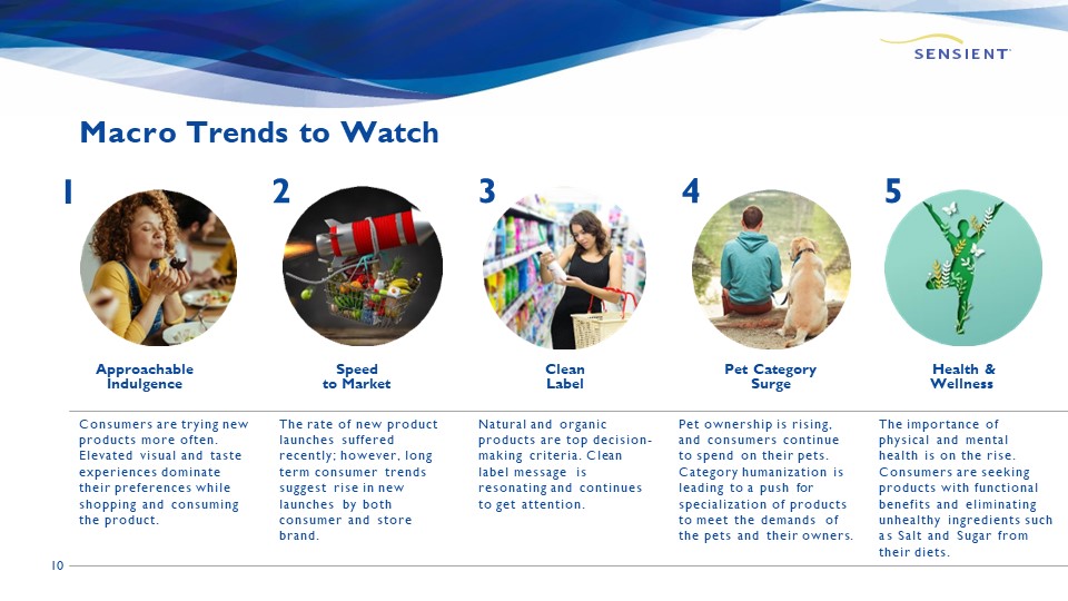 Macro Trends to Watch  4  Pet Category Surge  Consumers are trying new products more often.  Elevated visual and taste experiences dominate their preferences while shopping and consuming the product.  The rate of new product launches suffered recently; however, long term consumer trends suggest rise in new launches by both consumer and store brand.  Natural and organic products are top decision- making criteria. Clean label message is resonating and continues to get attention.  Pet ownership is rising, and consumers continue to spend on their pets. Category humanization is leading to a push for specialization of products to meet the demands of the pets and their owners.  The importance of physical and mental health is on the rise. Consumers are seeking products with functional benefits and eliminating  unhealthy ingredients such as Salt and Sugar from their diets.  2  Speed to Market  5  Health & Wellness  3  Clean Label  1  Approachable Indulgence  10