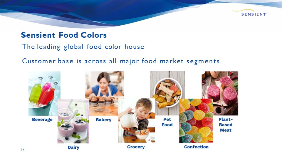 Sensient Food Colors  The leading global food color house  Customer base is across all major food market segments  14