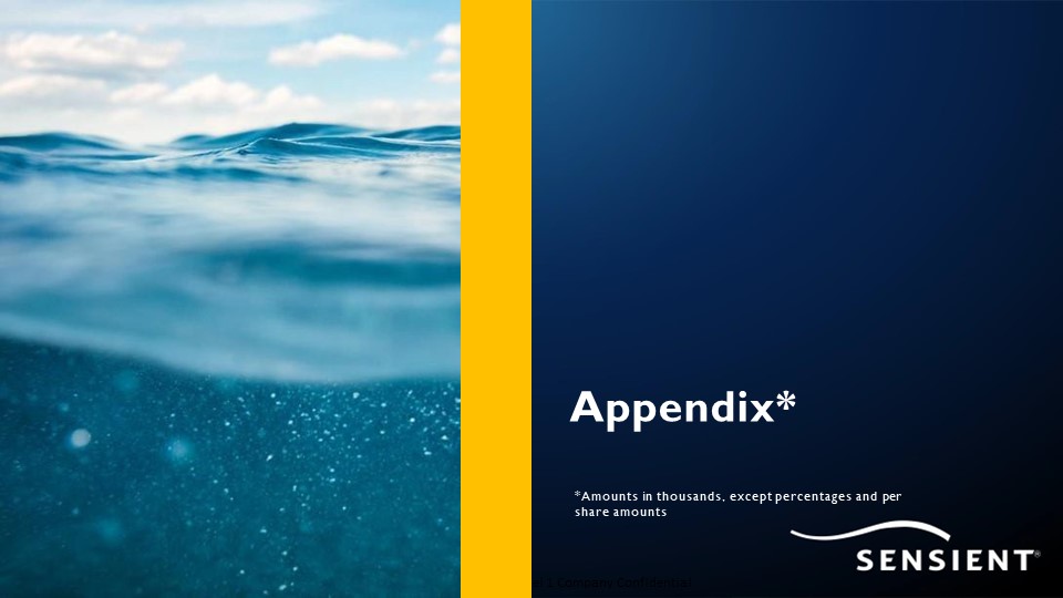 Sensient Tech  nologies: Lev  el 1 Company Confidential  Appendix*  *Amounts in thousands, except percentages and per share amounts