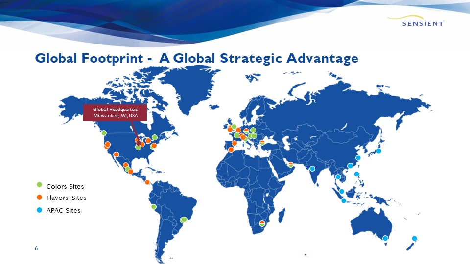 Global Footprint - A Global Strategic Advantage  6  Colors Sites  Flavors Sites APAC Sites  Global Headquarters  Milwaukee, WI, USA