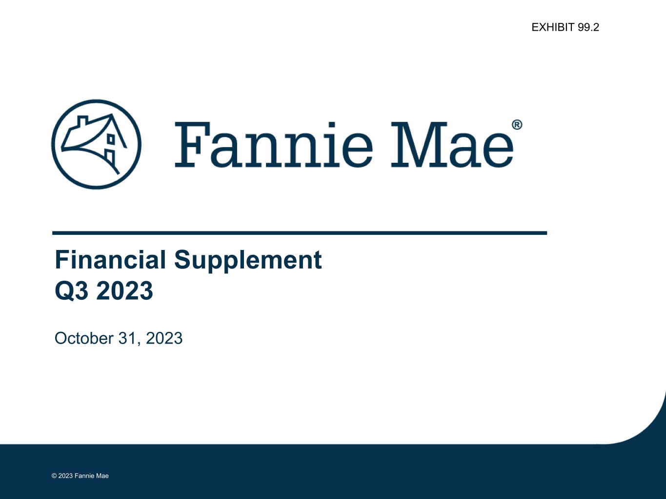 © 2023 Fannie Mae DRAFT Financial Supplement Q3 2023 October 31, 2023 EXHIBIT 99.2