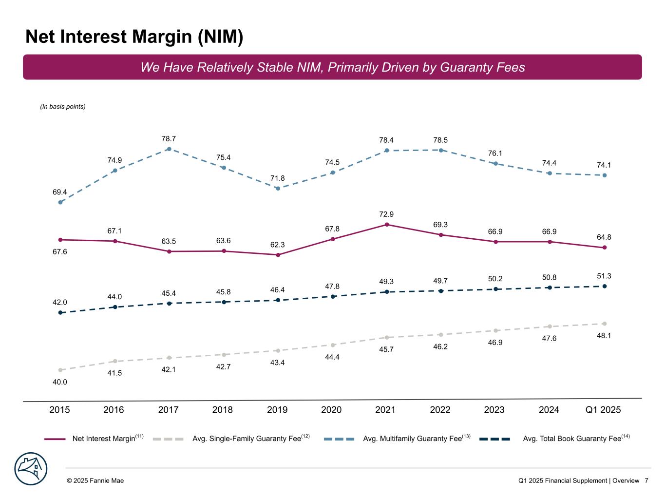 Q1 2025 Financial Supplement | Overview 7© 2025 Fannie Mae DRAFT Net Interest Margin (NIM) 67.6 67.1 63.5 63.6 62.3 67.8 72.9 69.3 66.9 66.9 64.8 42.0 44.0 45.4 45.8 46.4 47.8 49.3 49.7 50.2 50.8 51.3 40.0 41.5 42.1 42.7 43.4 44.4 45.7 46.2 46.9 47.6 48.1 69.4 74.9 78.7 75.4 71.8 74.5 78.4 78.5 76.1 74.4 74.1 2015 2016 2017 2018 2019 2020 2021 2022 2023 2024 Q1 2025 (In basis points) We Have Relatively Stable NIM, Primarily Driven by Guaranty Fees Net Interest Margin(11) Avg. Single-Family Guaranty Fee(12) Avg. Multifamily Guaranty Fee(13) Avg. Total Book Guaranty Fee(14)