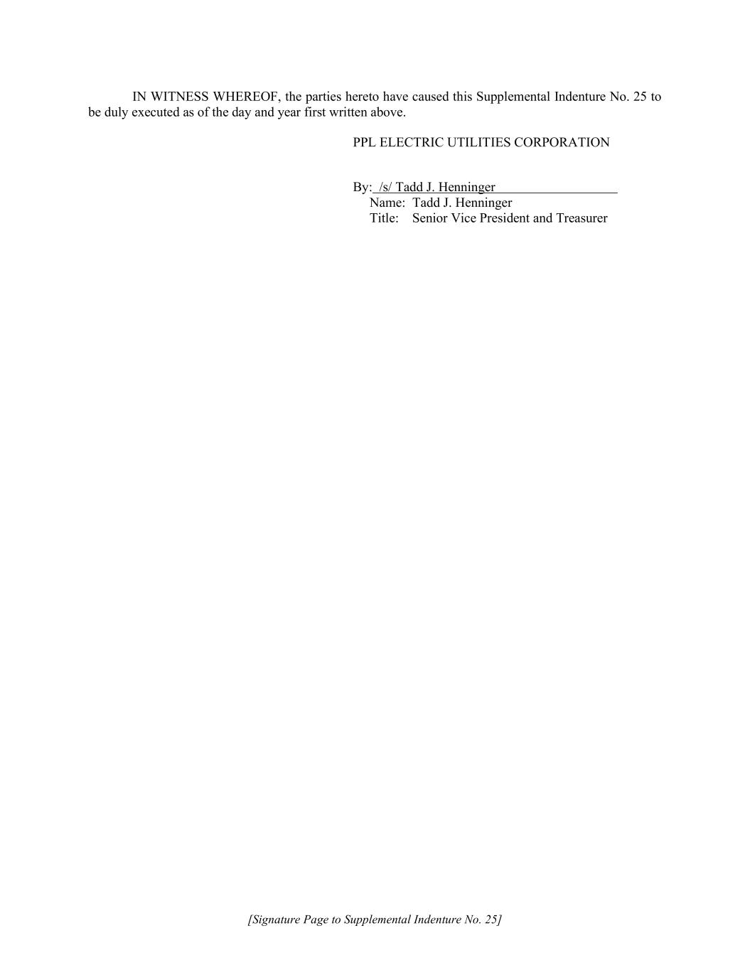 [Signature Page to Supplemental Indenture No. 25] IN WITNESS WHEREOF, the parties hereto have caused this Supplemental Indenture No. 25 to be duly executed as of the day and year first written above. PPL ELECTRIC UTILITIES CORPORATION By: /s/ Tadd J. Henninger Name: Tadd J. Henninger Title: Senior Vice President and Treasurer