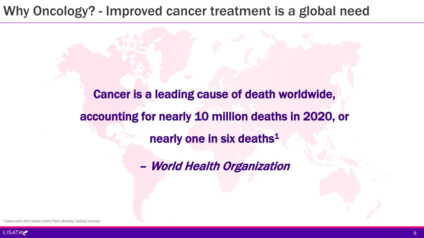 Why Oncology? - Improved cancer treatment is a global need 5 Cancer is a leading cause of death worldwide, accounting for nearly 10 million deaths in 2020, or nearly one in six deaths1 – World Health Organization 1 www.who.int/news-room/fact-sheets/detail/cancer