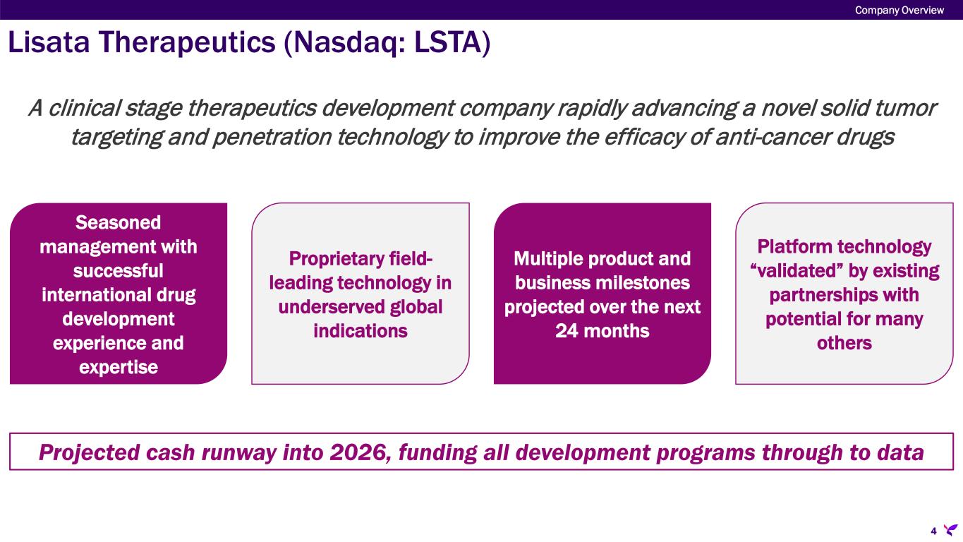 Lisata at a Glance Company Overview 3