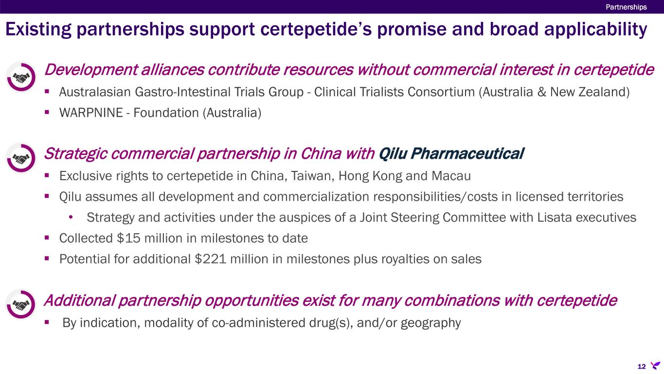 Partnerships Noteworthy existing relationships and potential for many more 11