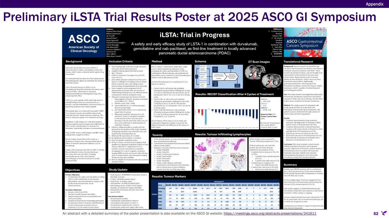 Preliminary iLSTA Trial Results Poster at 2025 ASCO GI Symposium Appendix 52An abstract with a detailed summary of the poster presentation is also available on the ASCO GI website: https://meetings.asco.org/abstracts-presentations/241611