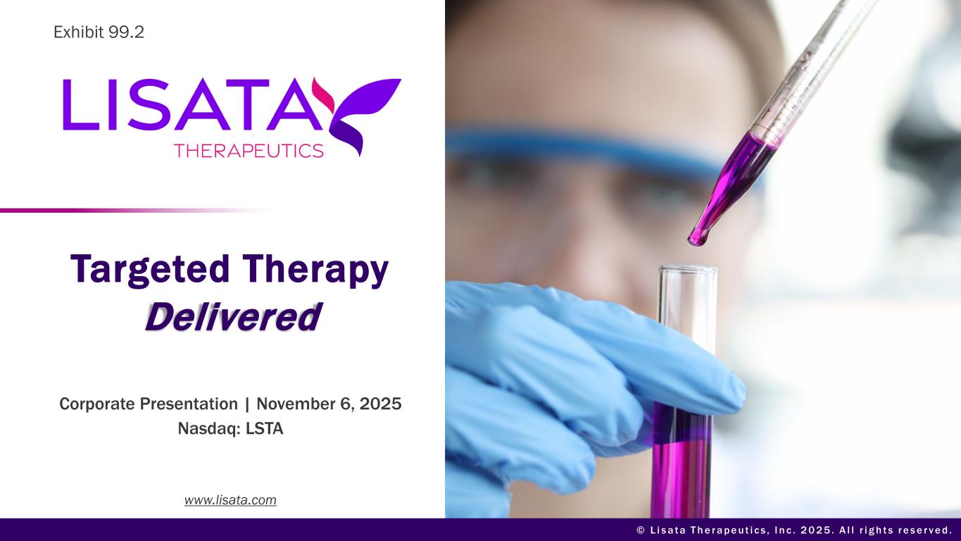 © L i s a t a T h e r a p e u t i c s , I n c . 2 0 2 5 . A l l r i g h t s r e s e r v e d . Targeted Therapy Delivered www.lisata.com Corporate Presentation | November 6, 2025 Nasdaq: LSTA Exhibit 99.2