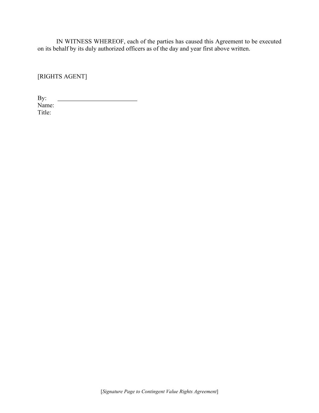 [Signature Page to Contingent Value Rights Agreement] IN WITNESS WHEREOF, each of the parties has caused this Agreement to be executed on its behalf by its duly authorized officers as of the day and year first above written. [RIGHTS AGENT] By: Name: Title: