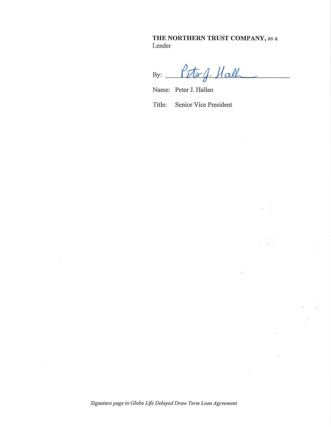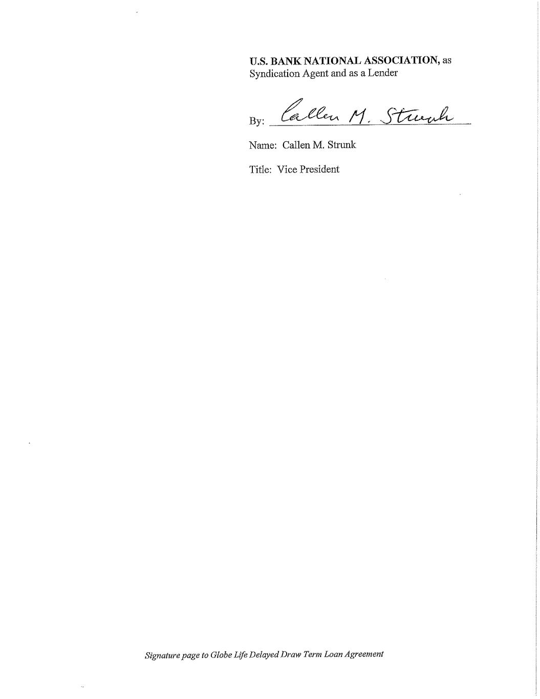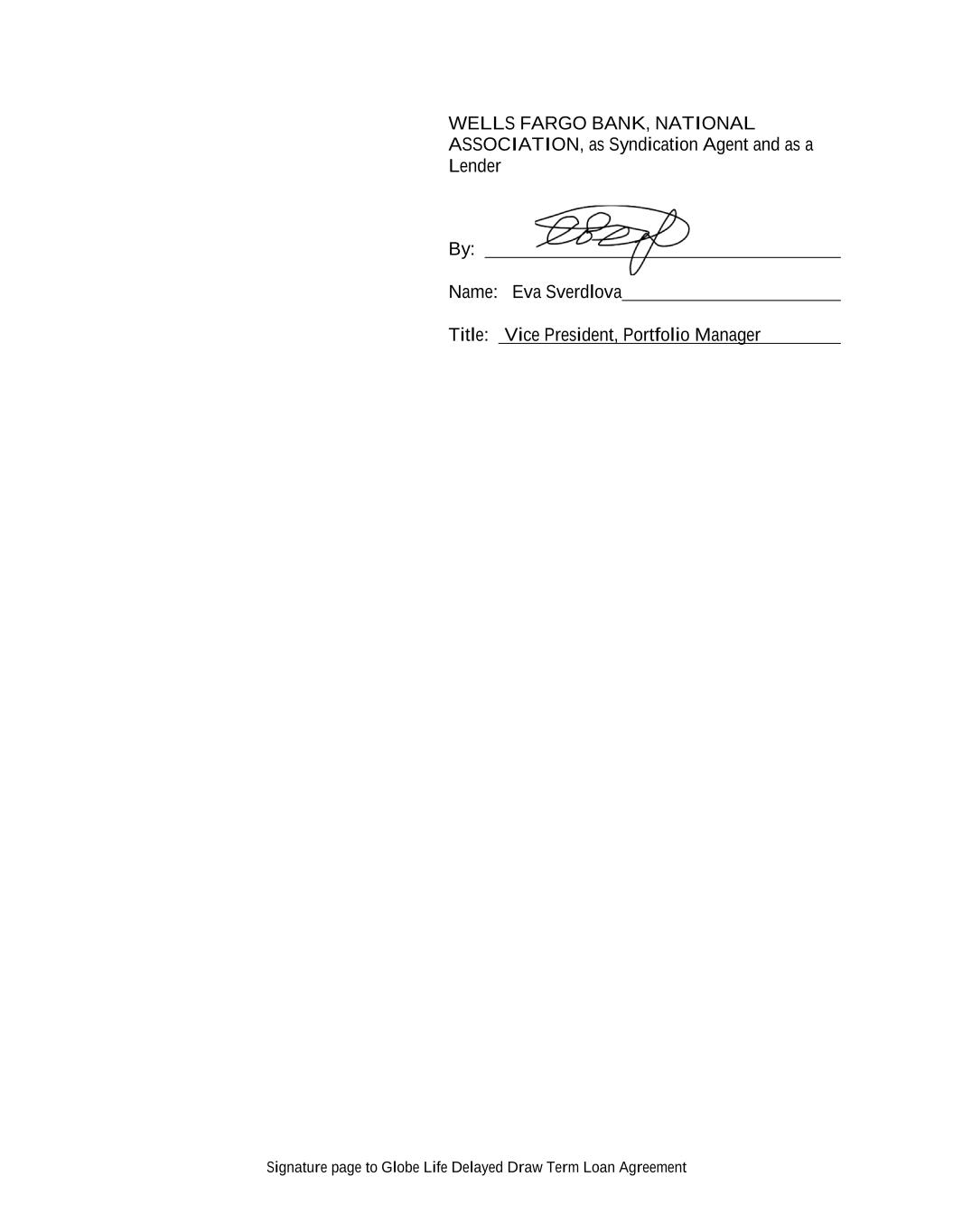 Signature page to Globe Life Delayed Draw Term Loan Agreement WELLS FARGO BANK, NATIONAL ASSOCIATION, as Syndication Agent and as a Lender By: Name: Eva Sverdlova Title: Vice President, Portfolio Manager