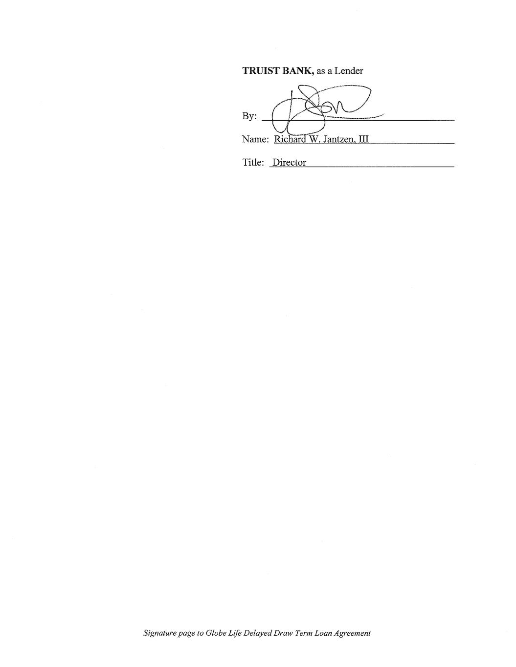 Signature page to Globe Life Delayed Draw Term Loan Agreement REGIONS BANK, as a Lender By: Name: William Soo Title: Director