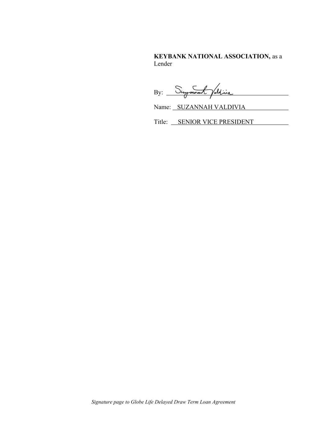 Signature page to Globe Life Delayed Draw Term Loan Agreement KEYBANK NATIONAL ASSOCIATION, as a Lender By: Name: SUZANNAH VALDIVIA Title: SENIOR VICE PRESIDENT