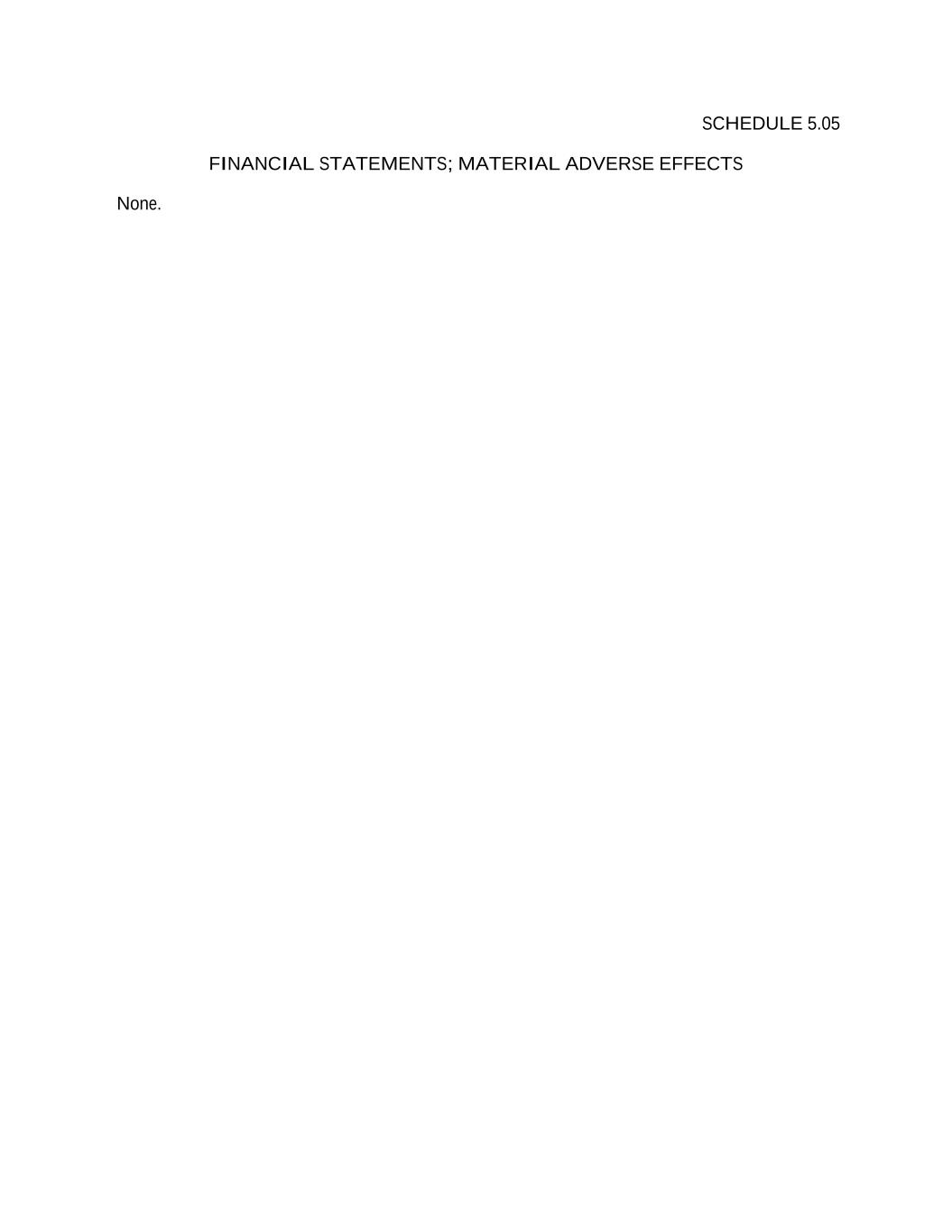 SCHEDULE 5.05 FINANCIAL STATEMENTS; MATERIAL ADVERSE EFFECTS None.