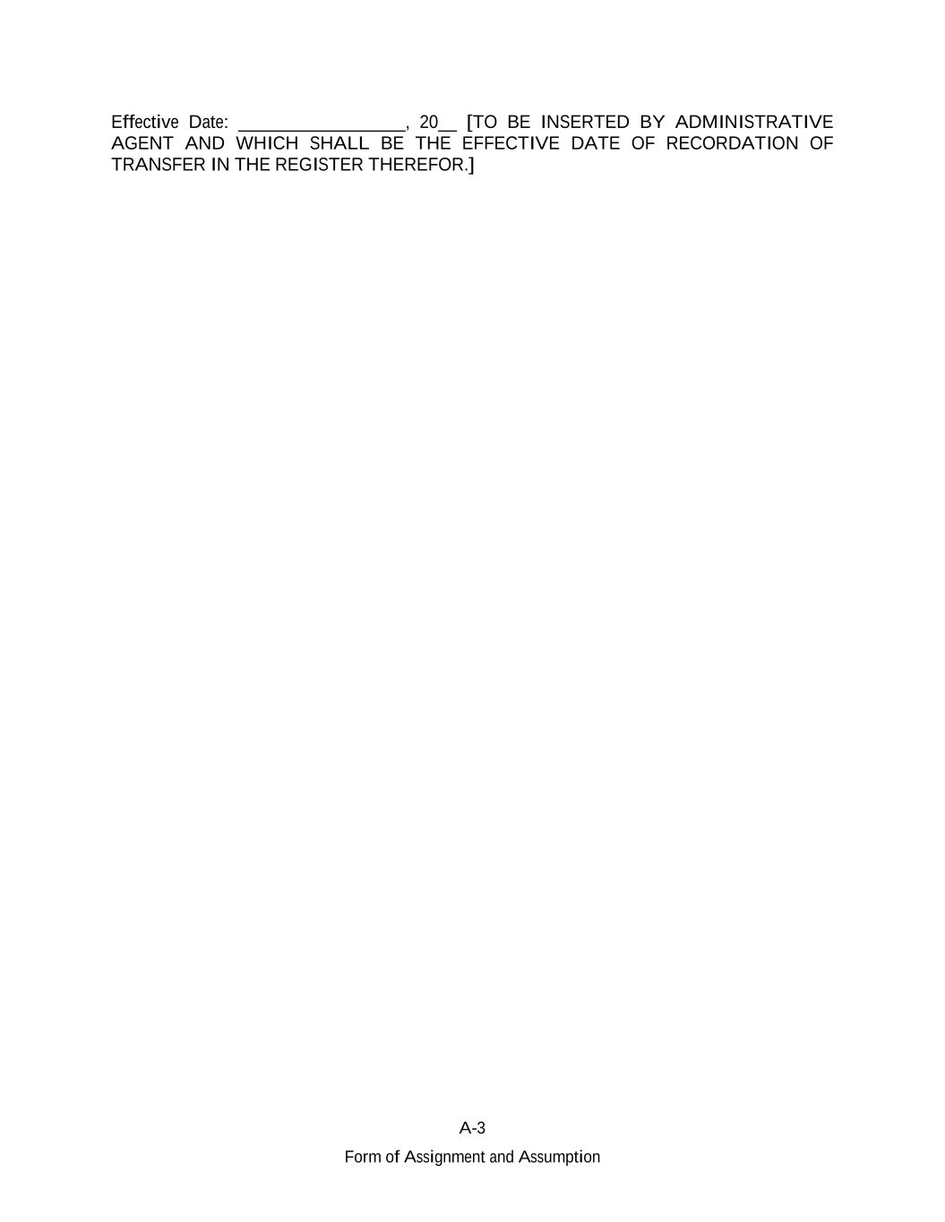 A-3 Form of Assignment and Assumption Effective Date: __________________, 20__ [TO BE INSERTED BY ADMINISTRATIVE AGENT AND WHICH SHALL BE THE EFFECTIVE DATE OF RECORDATION OF TRANSFER IN THE REGISTER THEREFOR.]