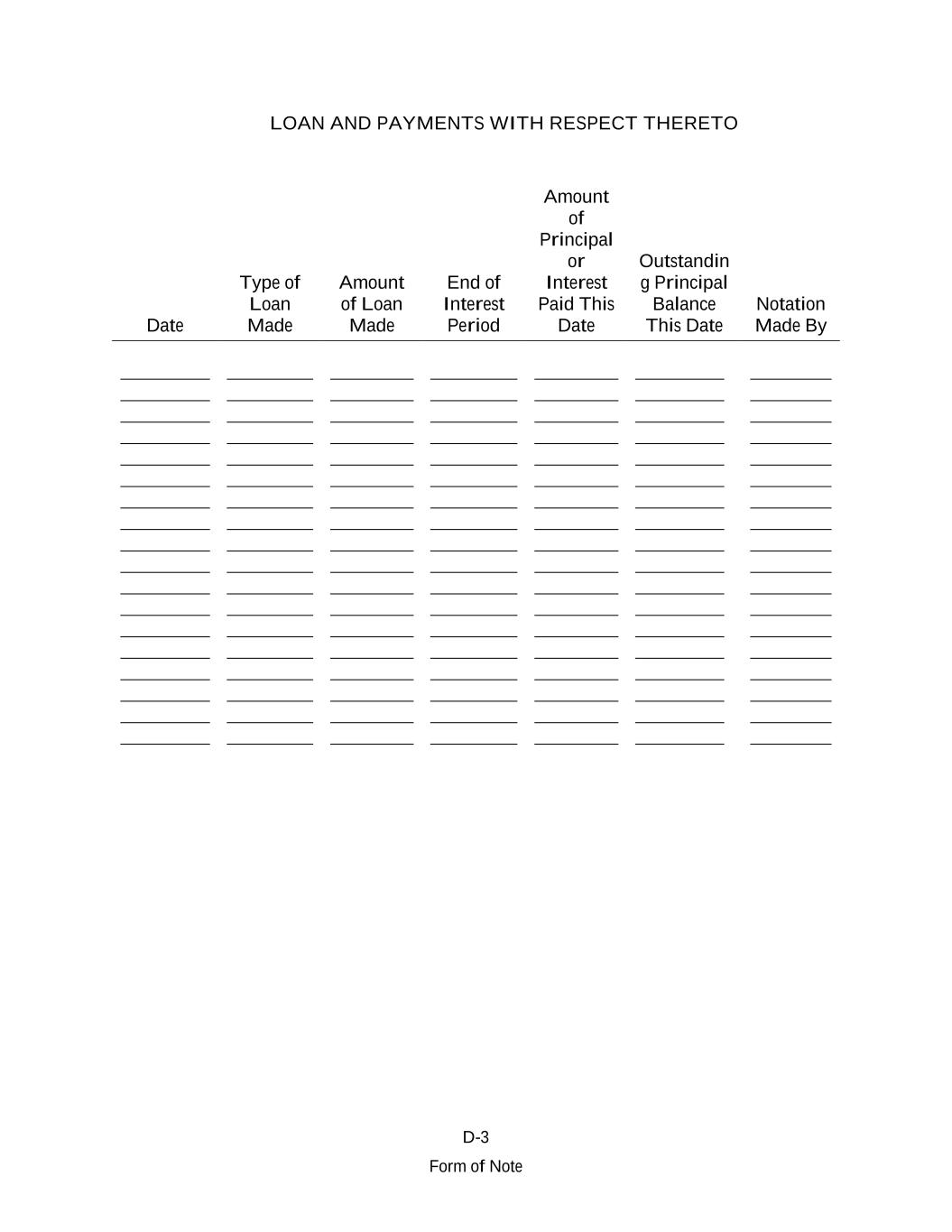 D-3 Form of Note LOAN AND PAYMENTS WITH RESPECT THERETO Date Type of Loan Made Amount of Loan Made End of Interest Period Amount of Principal or Interest Paid This Date Outstandin g Principal Balance This Date Notation Made By