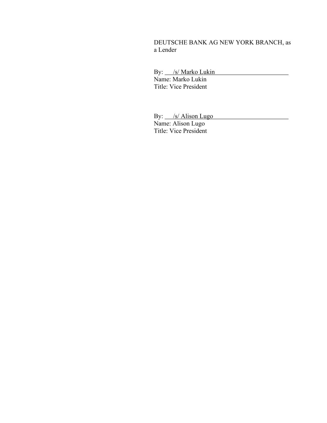 DEUTSCHE BANK AG NEW YORK BRANCH, as a Lender By: /s/ Marko Lukin Name: Marko Lukin Title: Vice President By: /s/ Alison Lugo Name: Alison Lugo Title: Vice President