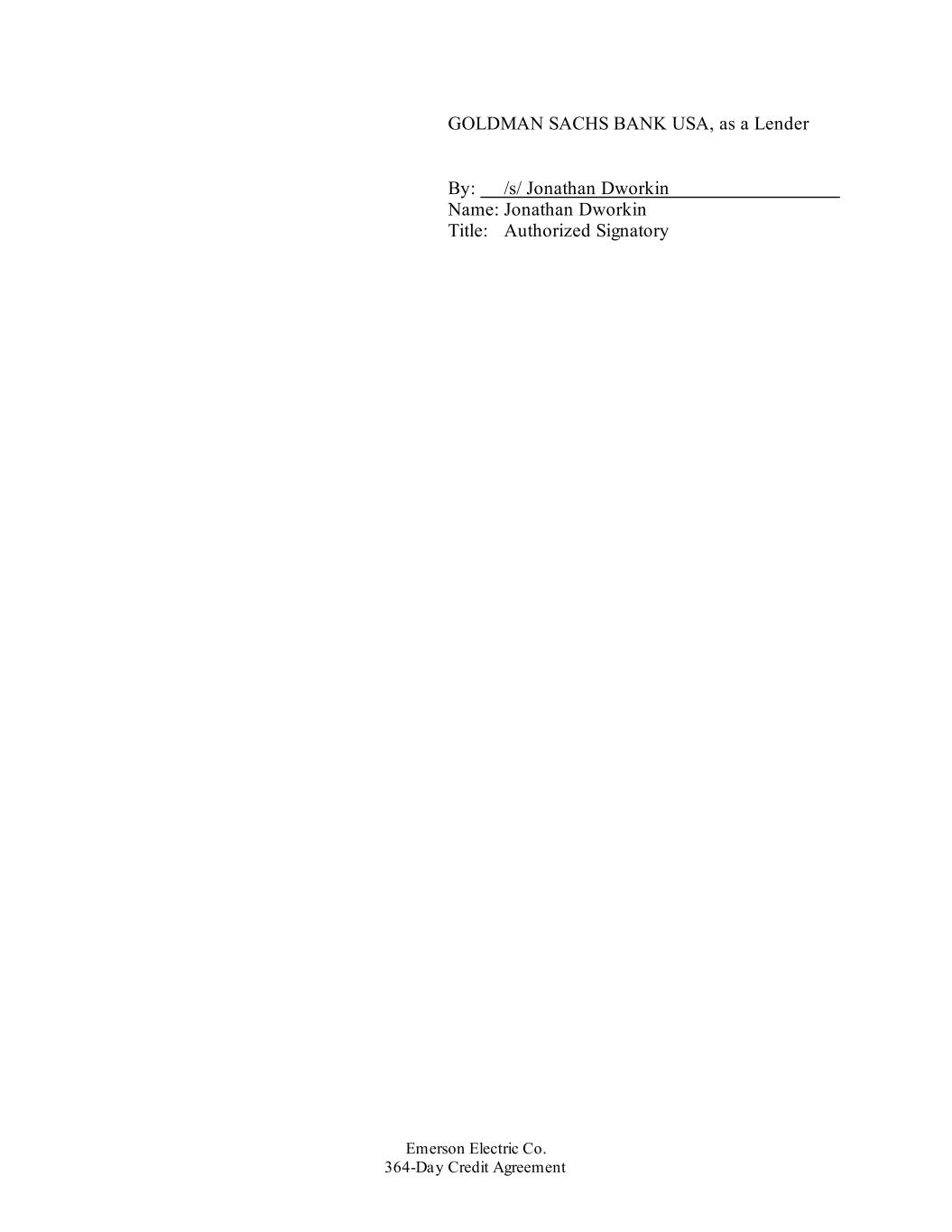 Emerson Electric Co. 364-Day Credit Agreement GOLDMAN SACHS BANK USA, as a Lender By: /s/ Jonathan Dworkin Name: Jonathan Dworkin Title: Authorized Signatory