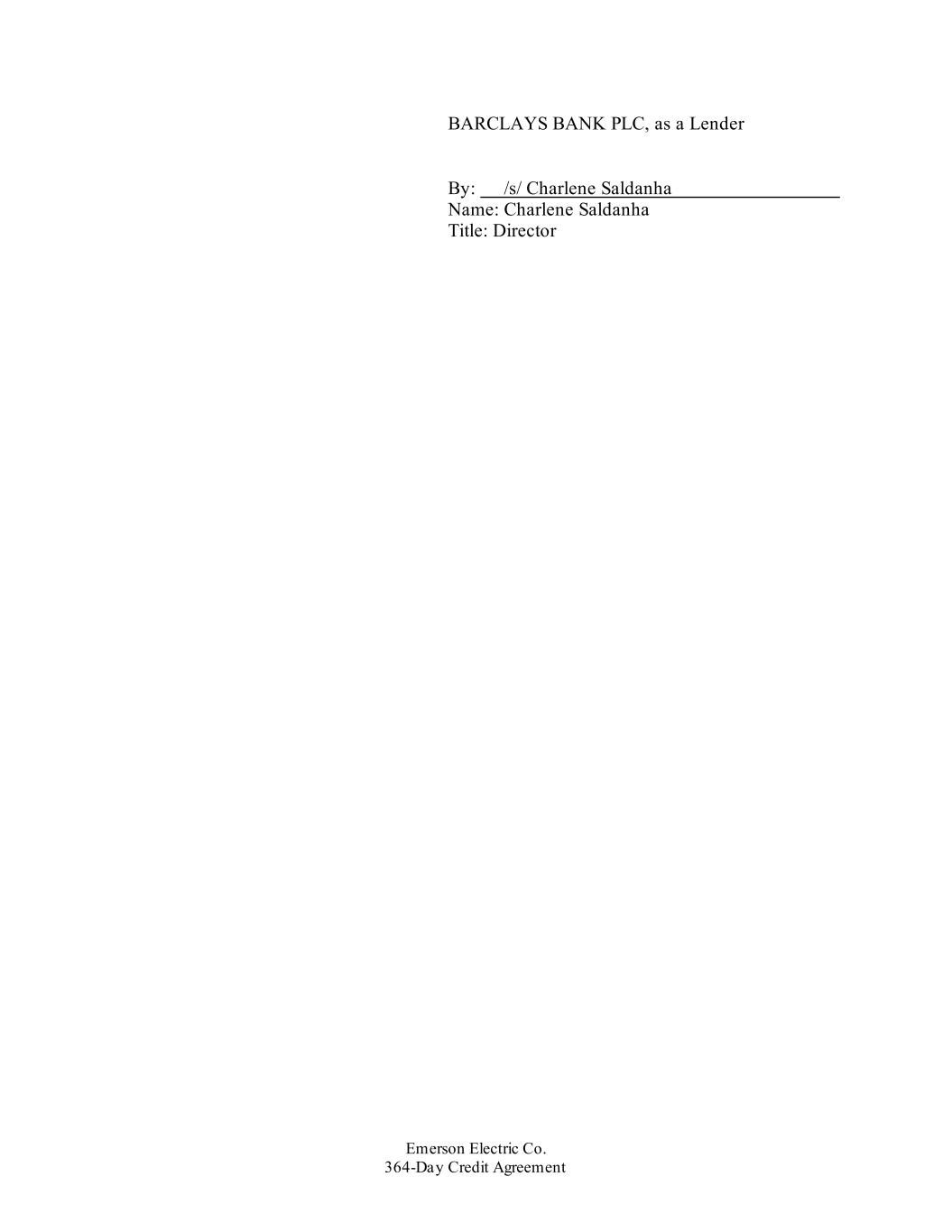 Emerson Electric Co. 364-Day Credit Agreement BARCLAYS BANK PLC, as a Lender By: /s/ Charlene Saldanha Name: Charlene Saldanha Title: Director