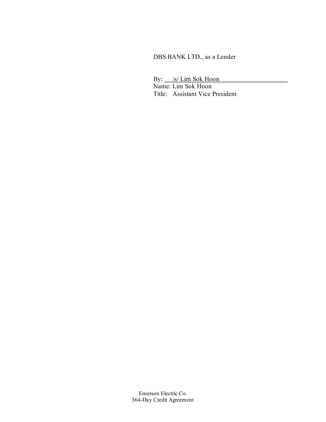 Emerson Electric Co. 364-Day Credit Agreement DBS BANK LTD., as a Lender By: /s/ Lim Sok Hoon Name: Lim Sok Hoon Title: Assistant Vice President