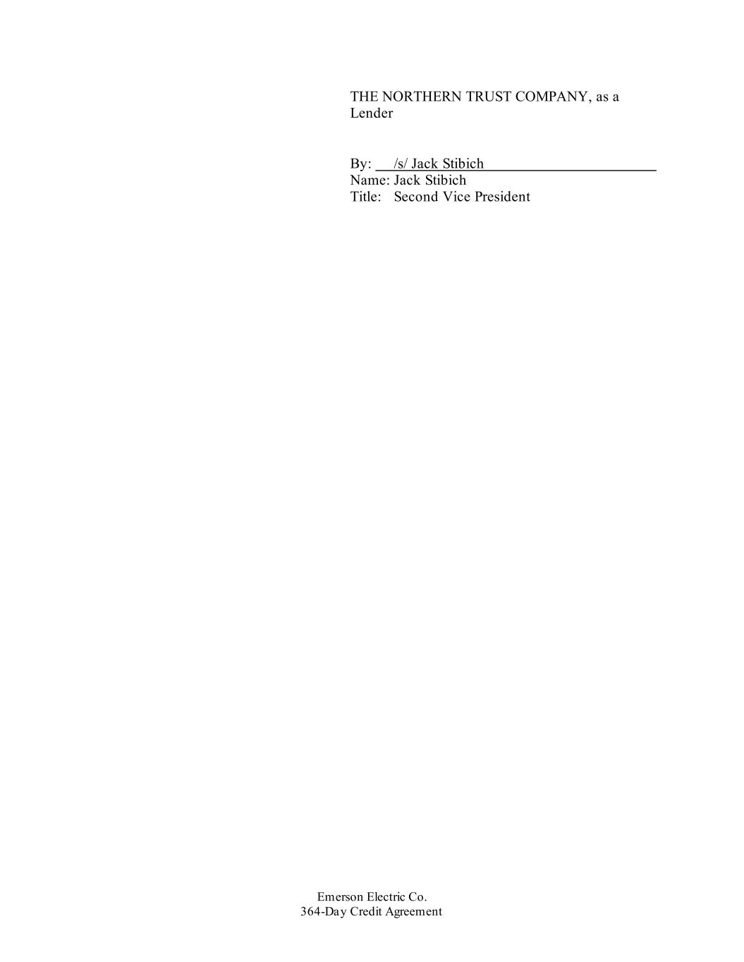 Emerson Electric Co. 364-Day Credit Agreement THE NORTHERN TRUST COMPANY, as a Lender By: /s/ Jack Stibich Name: Jack Stibich Title: Second Vice President