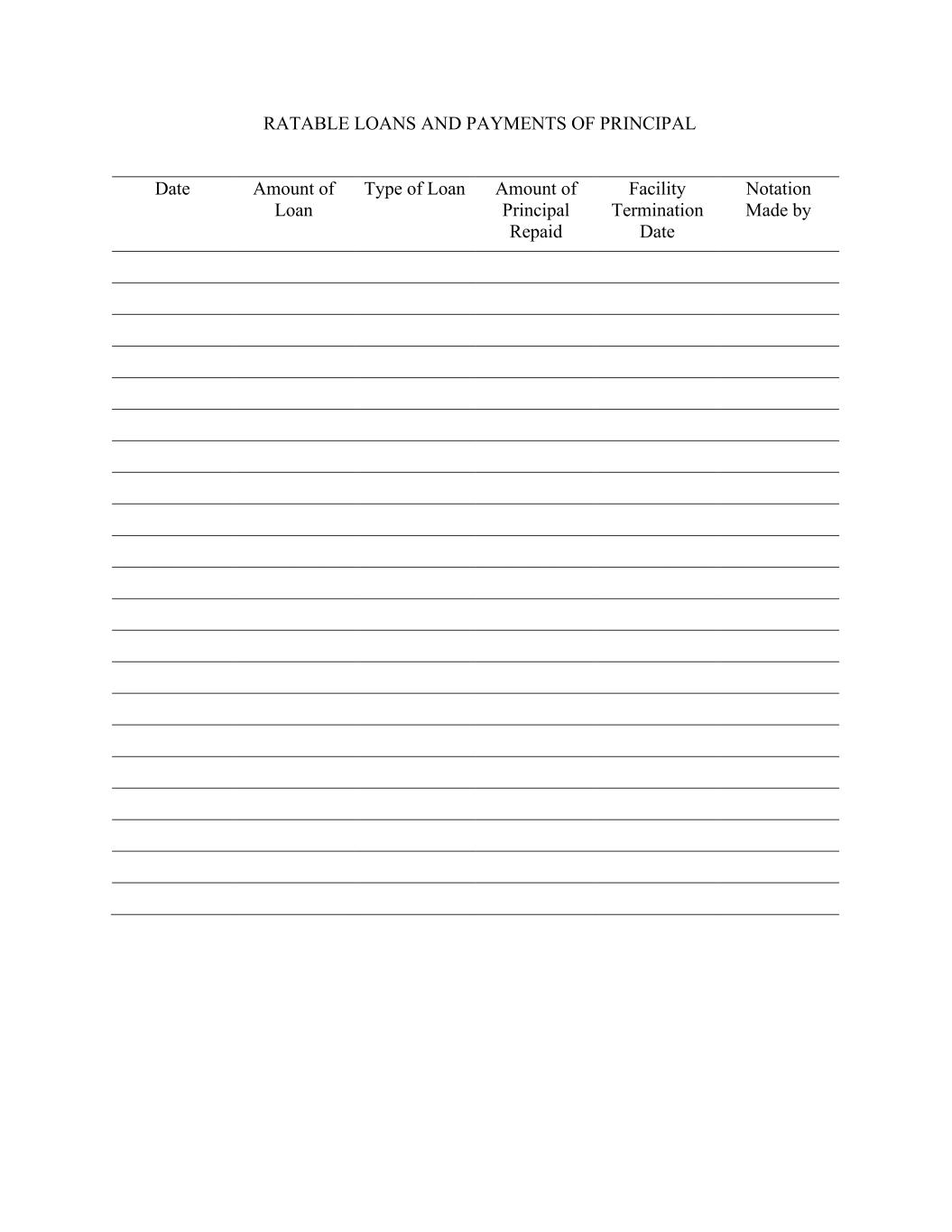 RATABLE LOANS AND PAYMENTS OF PRINCIPAL Date Amount of Loan Type of Loan Amount of Principal Repaid Facility Termination Date Notation Made by
