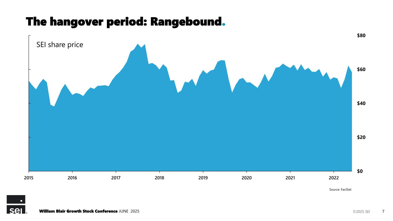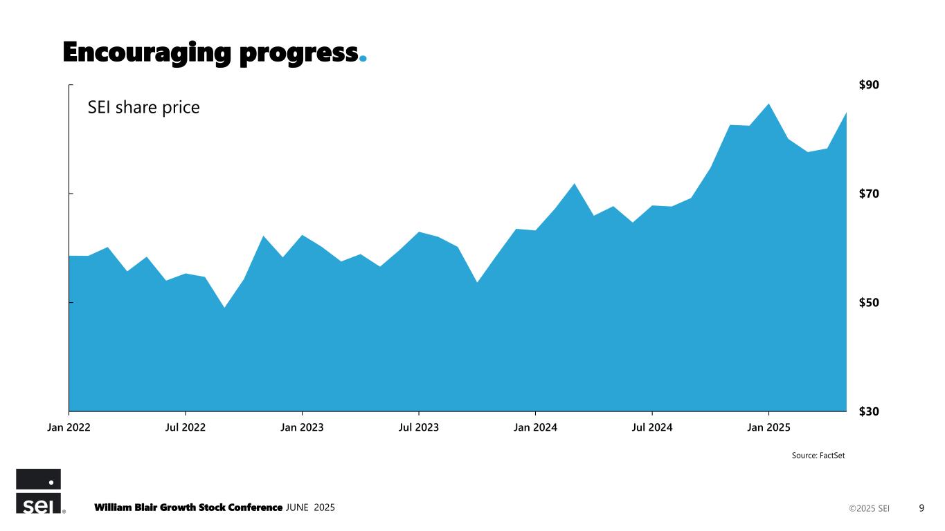 ©2025 SEI $0 $20 $40 $60 $80 2015 2016 2017 2018 2019 2020 2021 2022 The hangover period: Rangebound. SEI share price William Blair Growth Stock Conference JUNE 2025 7 Source: FactSet