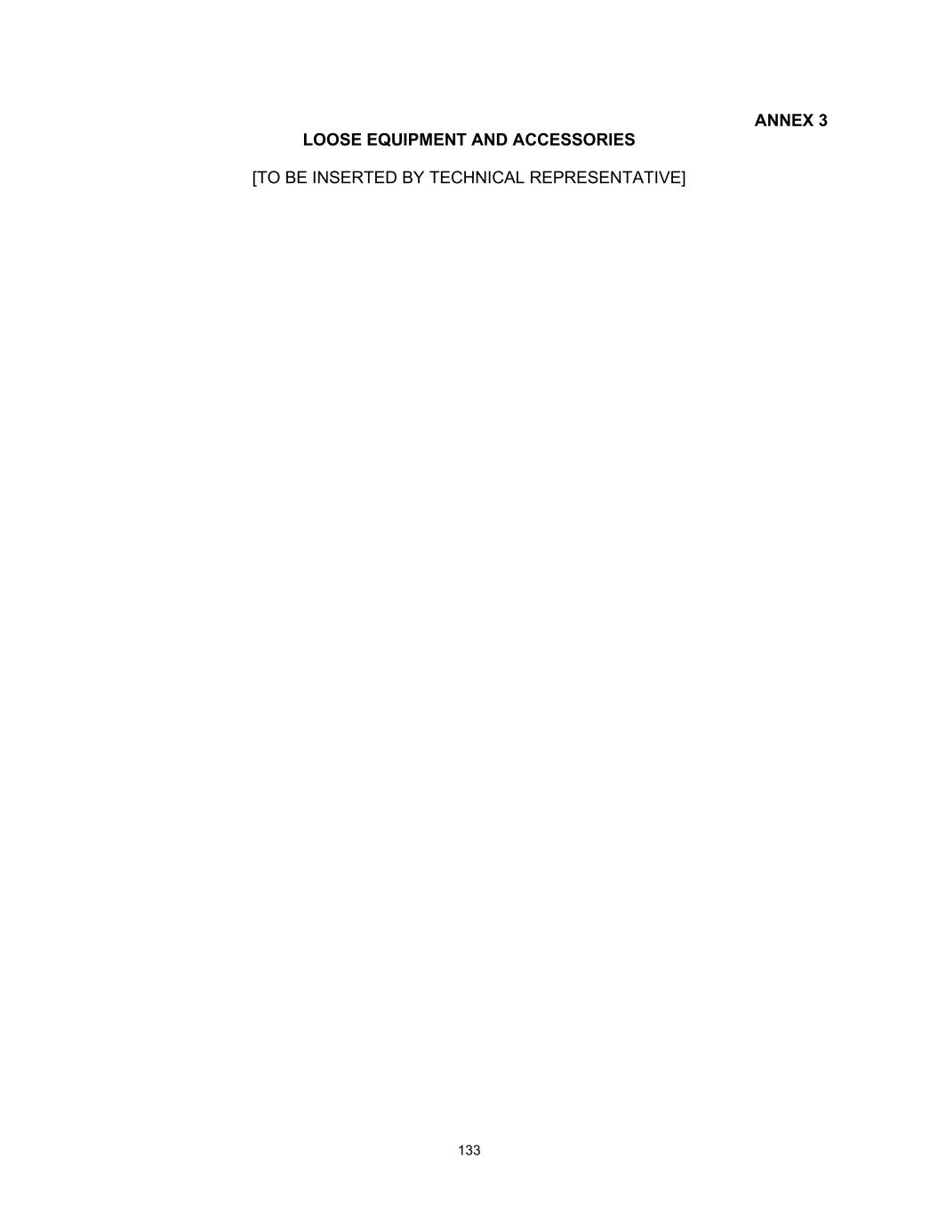 133 ANNEX 3 LOOSE EQUIPMENT AND ACCESSORIES [TO BE INSERTED BY TECHNICAL REPRESENTATIVE]