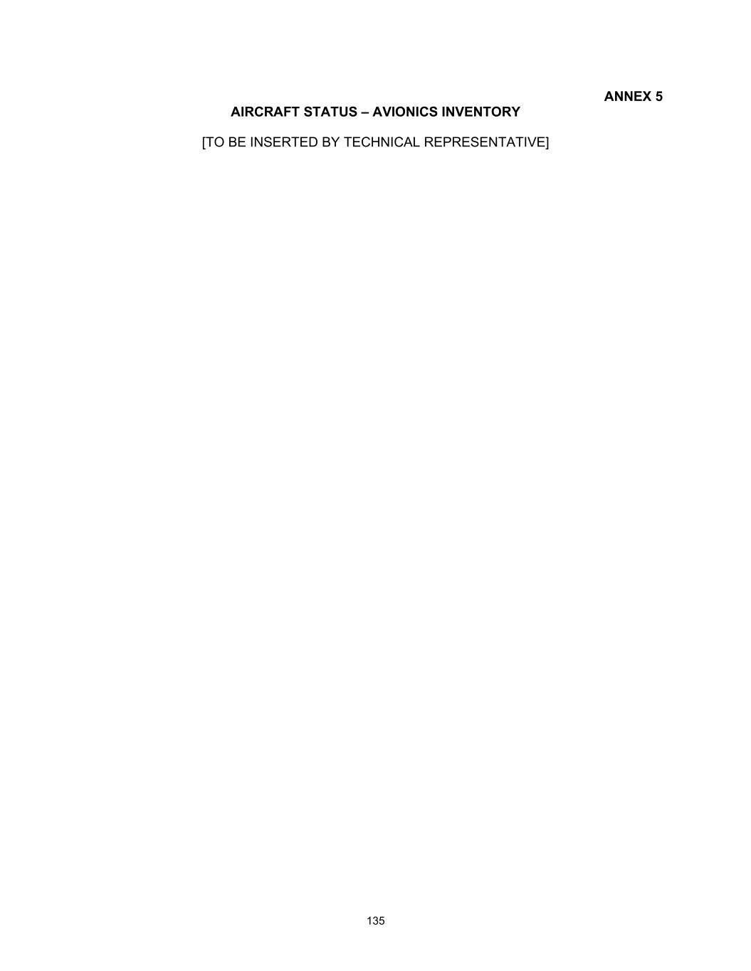 135 ANNEX 5 AIRCRAFT STATUS – AVIONICS INVENTORY [TO BE INSERTED BY TECHNICAL REPRESENTATIVE]