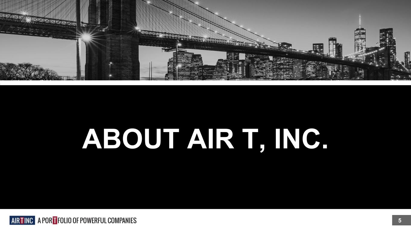 1. About AIR T, INC. 2. Performance 3. Our Growth Strategies 4. Appendix - Risk Factors 4 CONTENTS