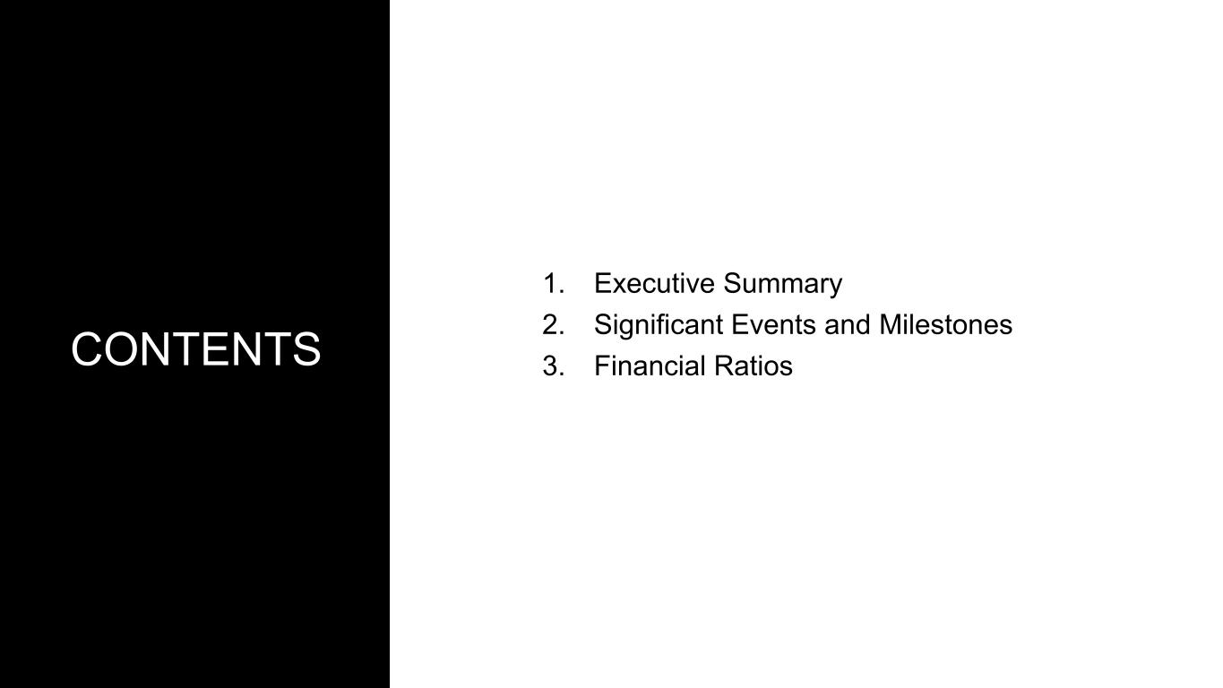 CONTENTS x 1. Executive Summary 2. Significant Events and Milestones 3. Financial Ratios