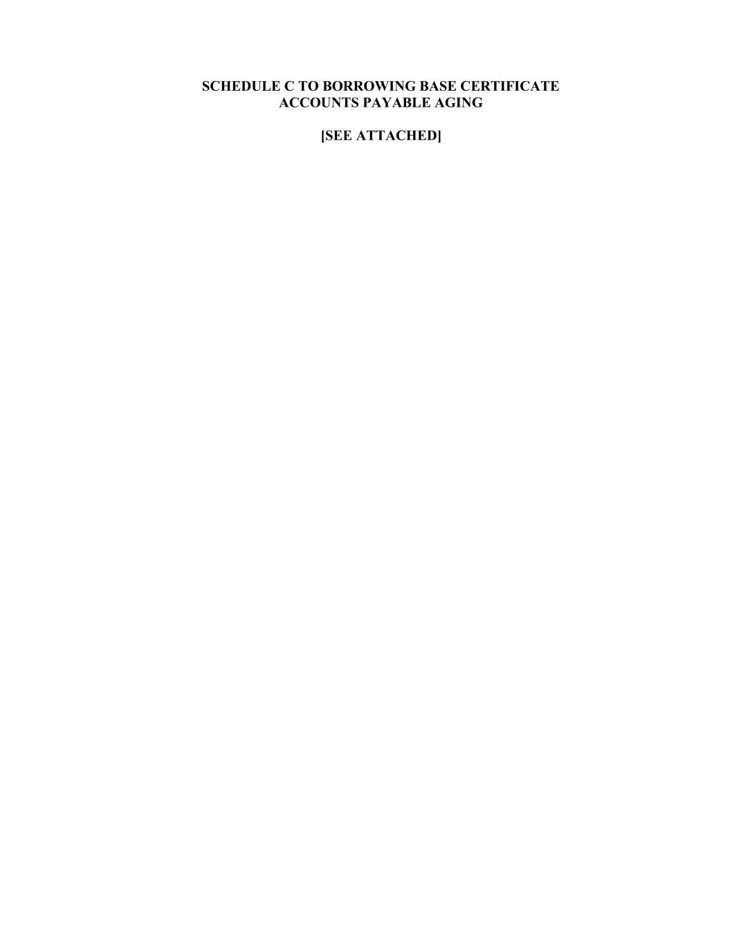 SCHEDULE C TO BORROWING BASE CERTIFICATE ACCOUNTS PAYABLE AGING [SEE ATTACHED]