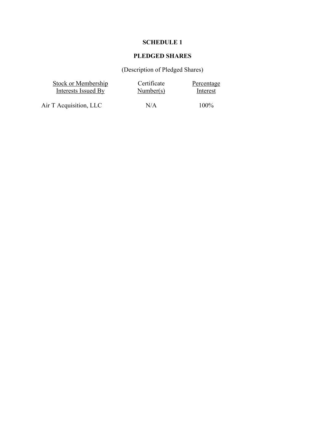 SCHEDULE 1 PLEDGED SHARES (Description of Pledged Shares) Stock or Membership Interests Issued By Certificate Number(s) Percentage Interest Air T Acquisition, LLC N/A 100%