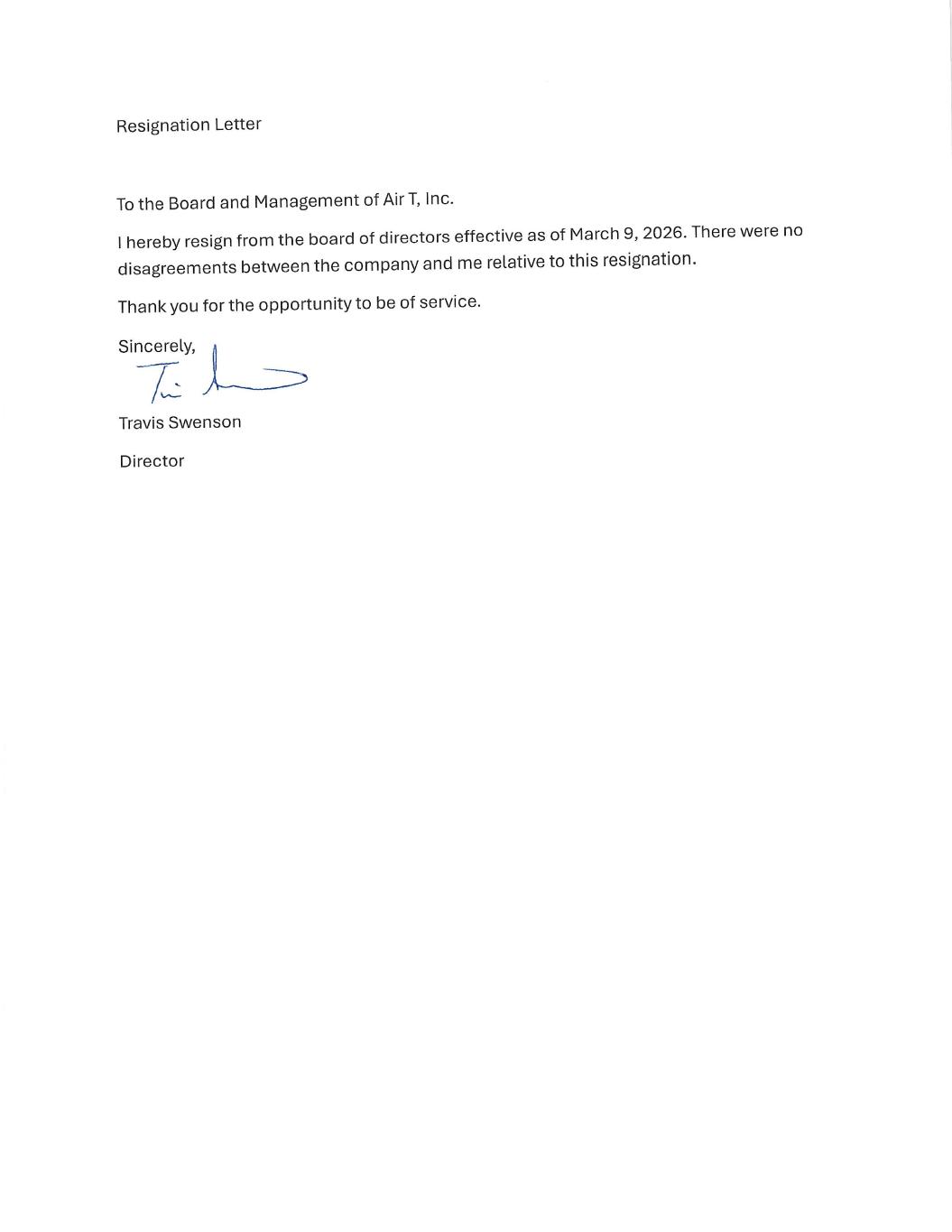 EX-99.1 2 tswenson-airtresignation.htm EX-99.1 tswenson-airtresignation